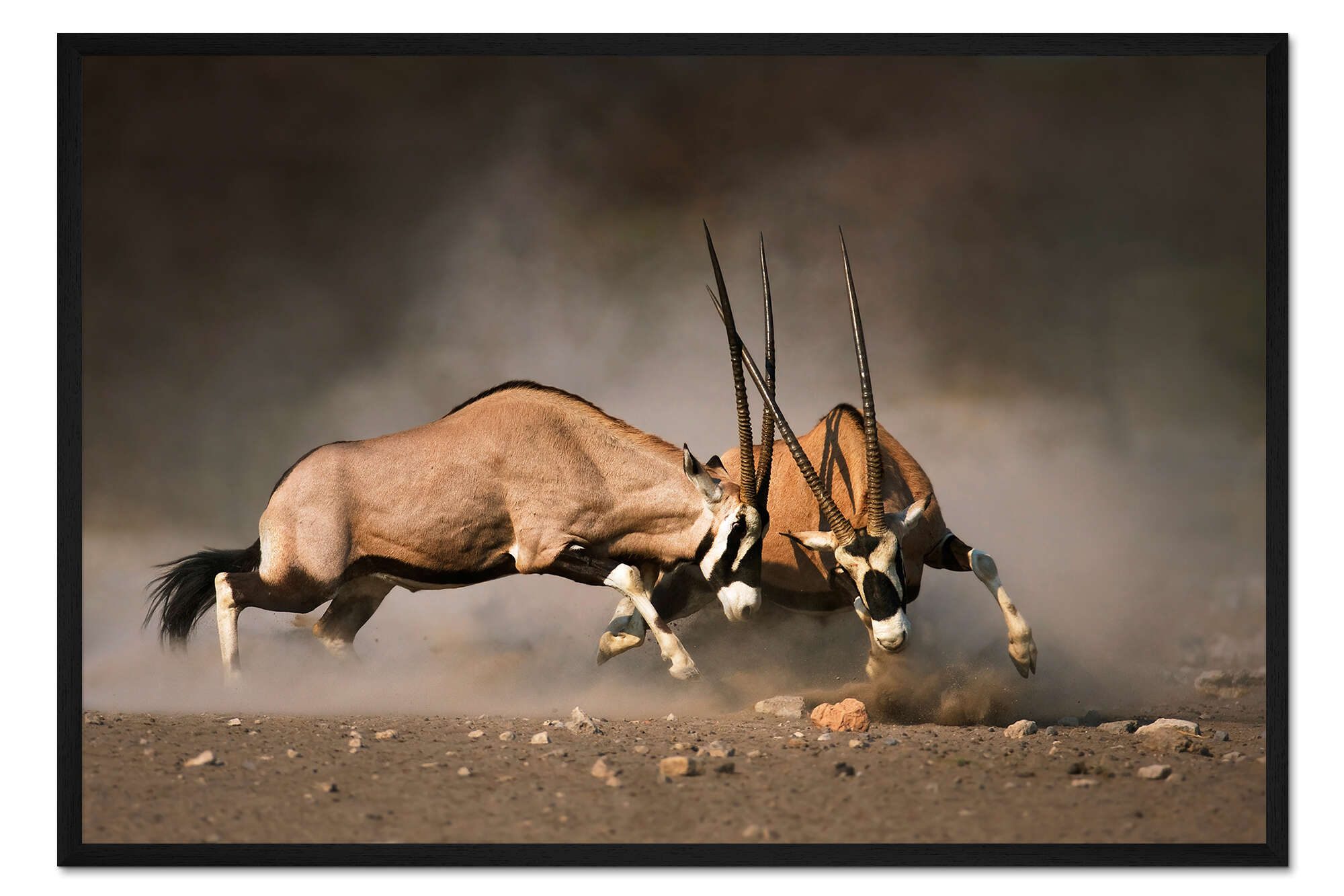 Posterlounge   Wandbilder   Querformat   Johan Swanepoel   Gerahmter Kunstdruck Oryx Antilopen beim Kampf