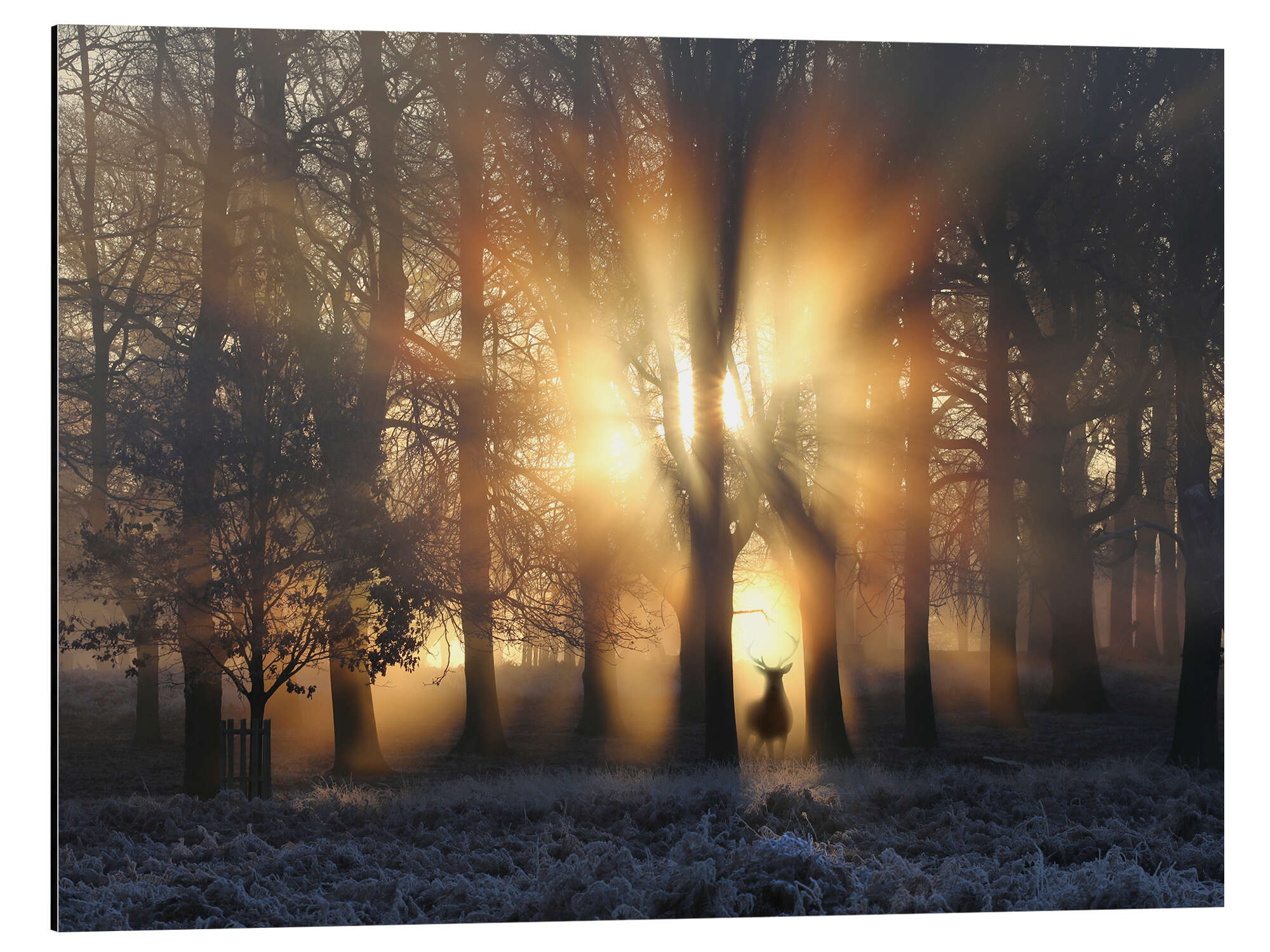 Posterlounge   Wandbilder   Natur   Winter   Alex Saberi   Magnettafel Hirsch im lichtdurchfluteten Wald