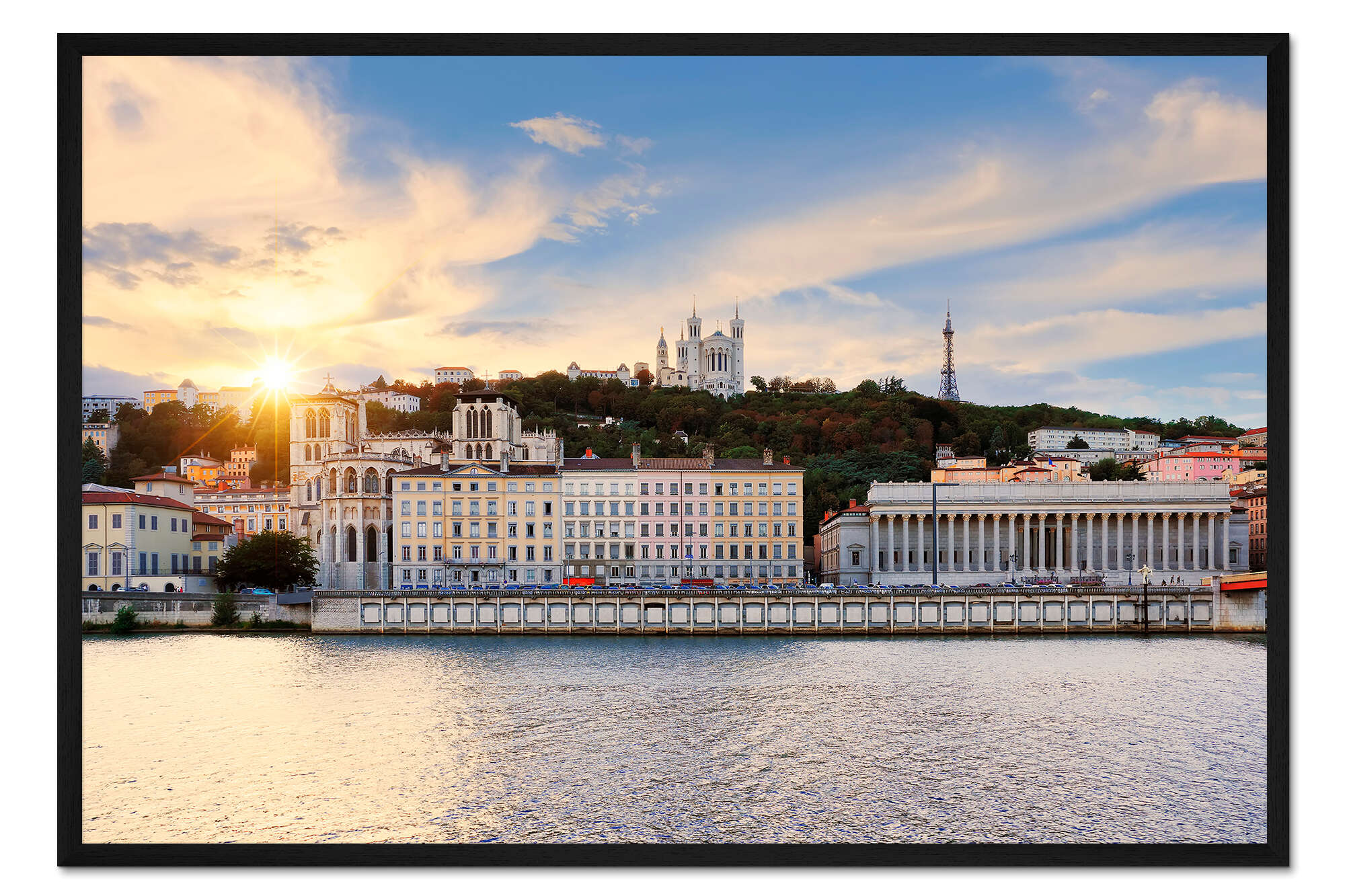 Posterlounge   Wandbilder   Fotografie   Gerahmter Kunstdruck Bunter, wolkiger Sonnenuntergang über Vieux Lyon