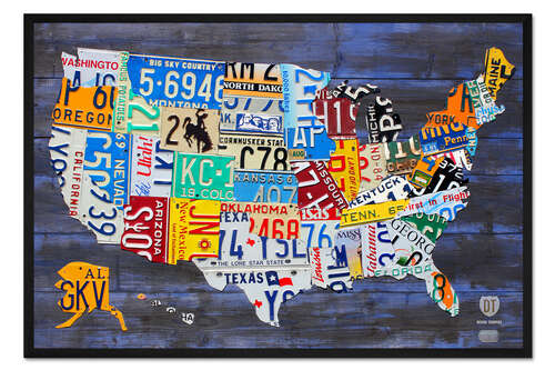 Posterlounge   Wandbilder   Querformat   Design Turnpike   Gerahmter Kunstdruck Nummernschild Karte der USA