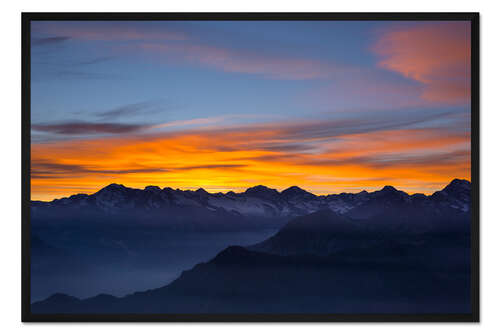 Posterlounge   Wandbilder   Querformat   Fabio Lamanna   Gerahmter Kunstdruck Bunter Himmel bei Sonnenuntergang über den Alpen