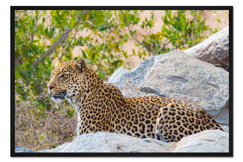 Posterlounge   Wandbilder   Fotografie   Fabio Lamanna   Gerahmter Kunstdruck Leopard zwischen Felsen nah herauf Nationalpark Kruger, Südafrika