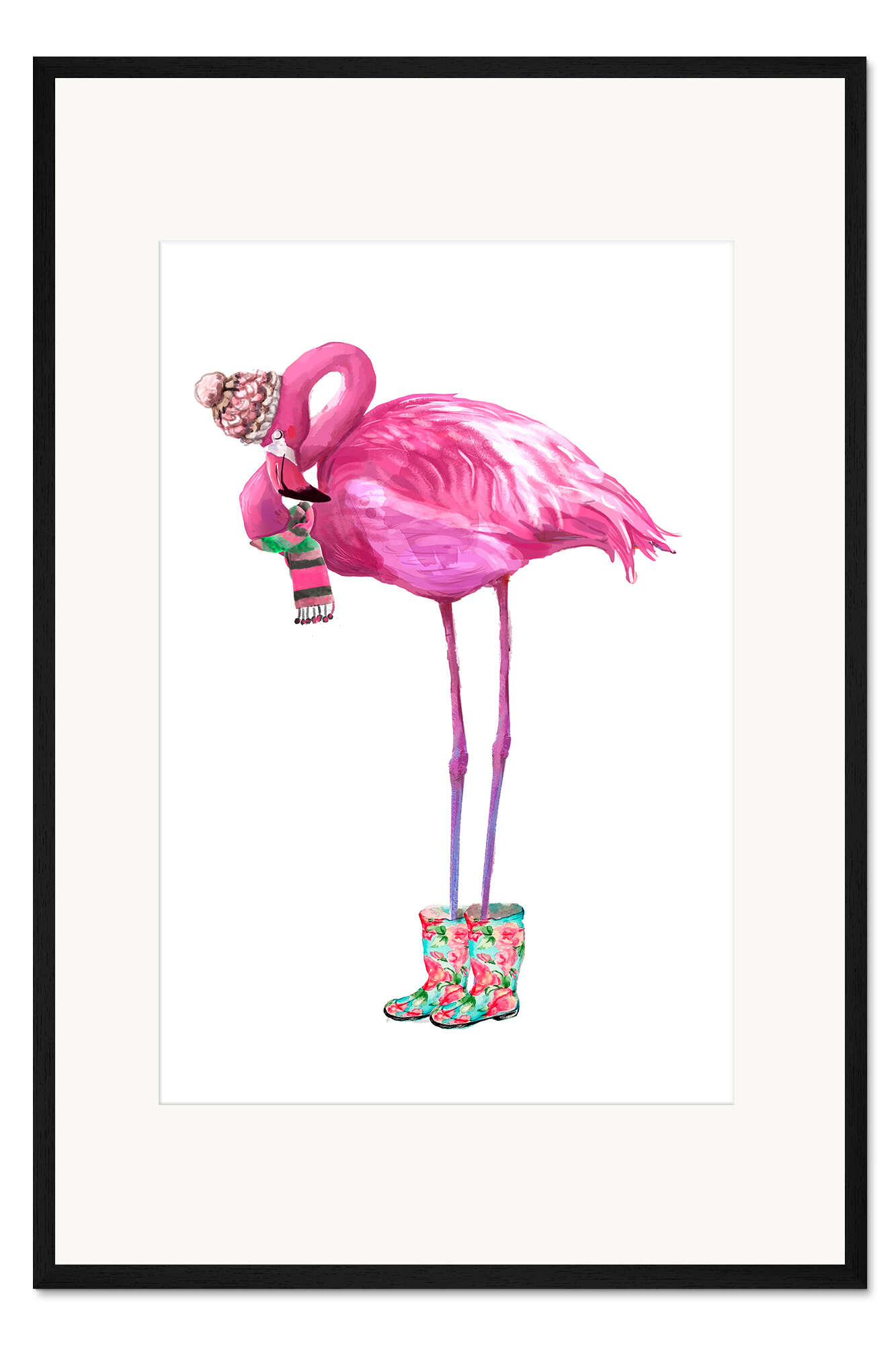 Posterlounge   Wandbilder   Pink   Kidz Collection   Gerahmter Kunstdruck Rosafarbener Flamingo mit Gummistiefeln