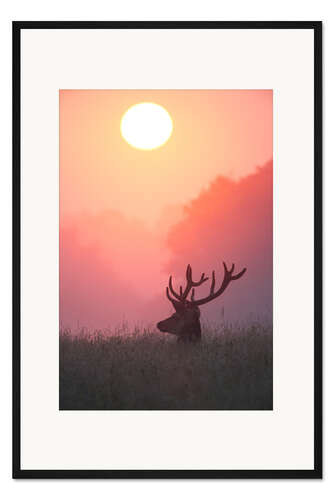Posterlounge   Wandbilder   Hochformat   Alex Saberi   Gerahmter Kunstdruck Rothirsch bei Sonnenuntergang