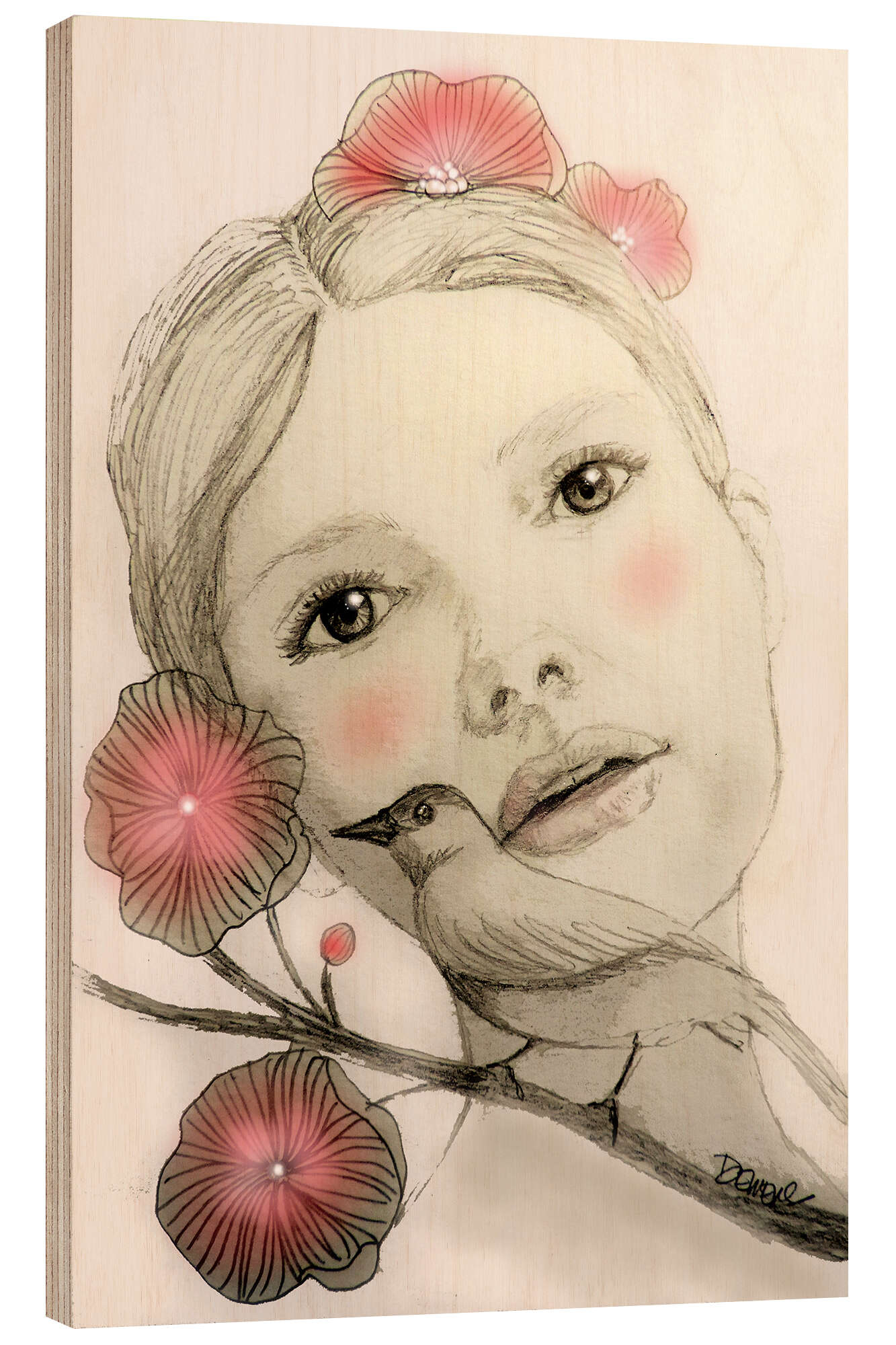 Posterlounge   Wandbilder   Tiere   Vögel   Sylvie Demers   Holzbild Melodie in zartem Rot