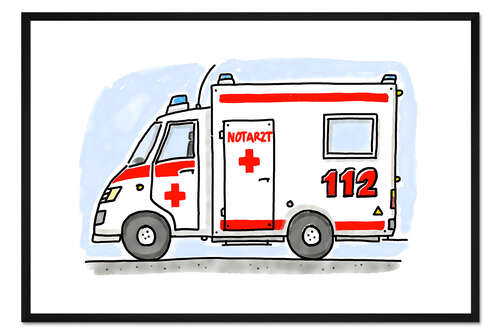 Posterlounge   Wandbilder   Querformat   Hugos Illustrations   Gerahmter Kunstdruck Hugos Notarzt