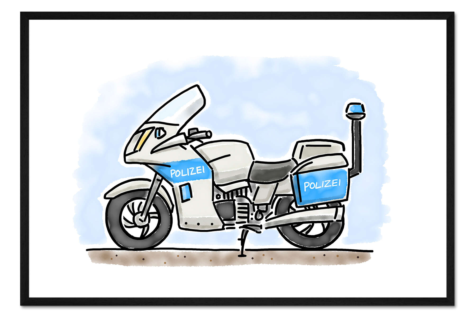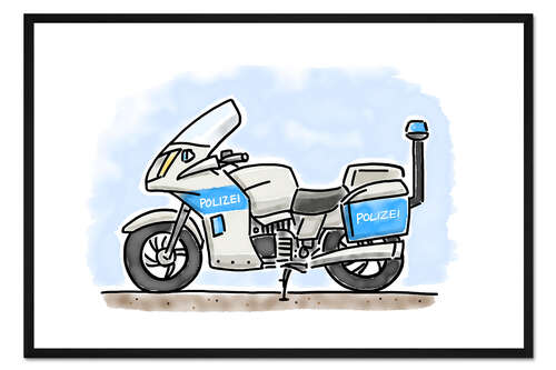 Posterlounge   Wandbilder   Querformat   Hugos Illustrations   Gerahmter Kunstdruck Hugos Polizei Motorrad