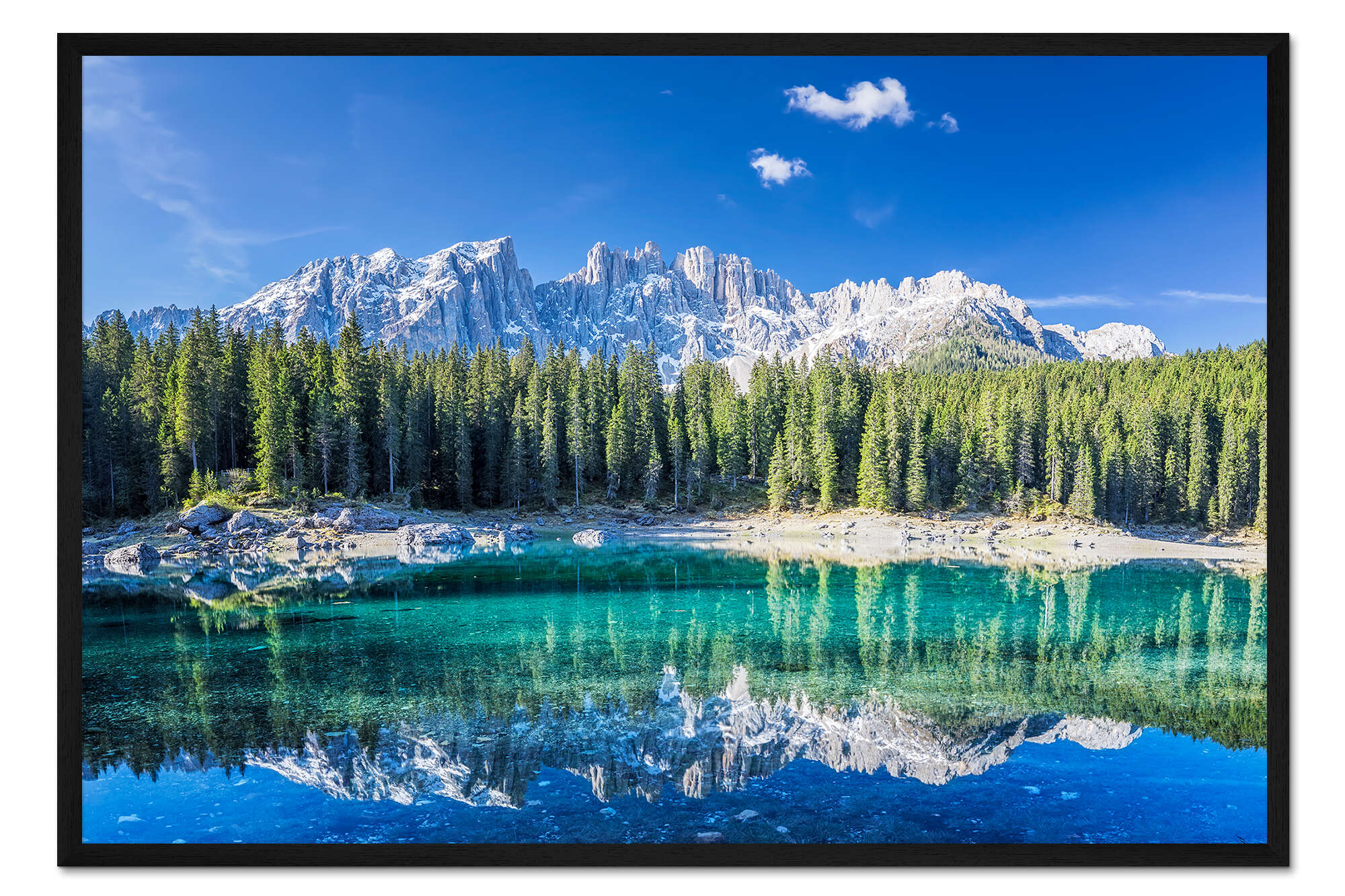Posterlounge   Wandbilder   Reisen   Dolomiten   Dieter Meyrl   Gerahmter Kunstdruck Karersee mit Latemar Gebirgskette, Dolomiten, Italien