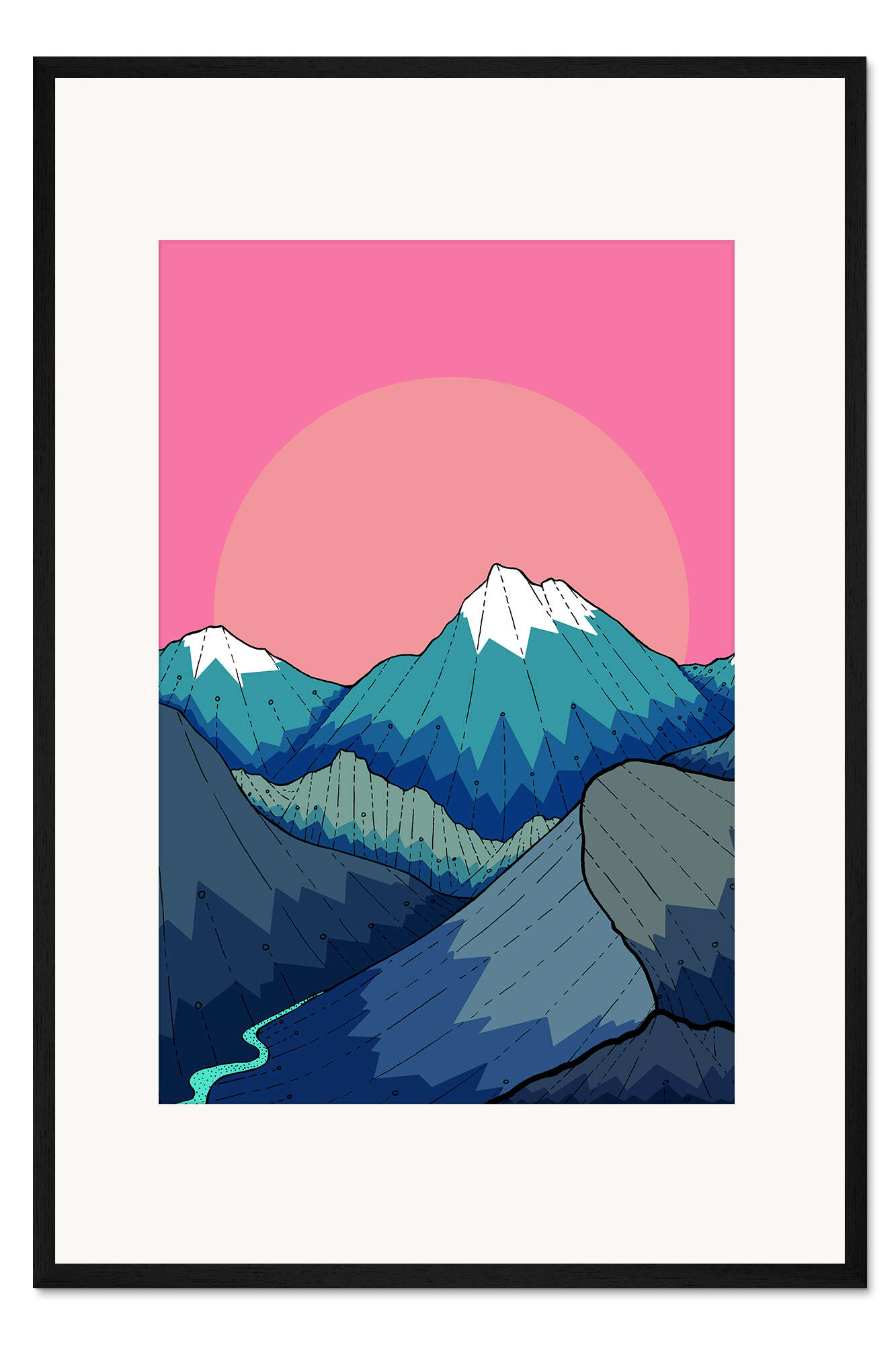 Posterlounge   Wandbilder   Landschaften   Berge & Gebirge   Stephen Wade   Gerahmter Kunstdruck Ein kleiner Fluss zieht sich durch die Berge