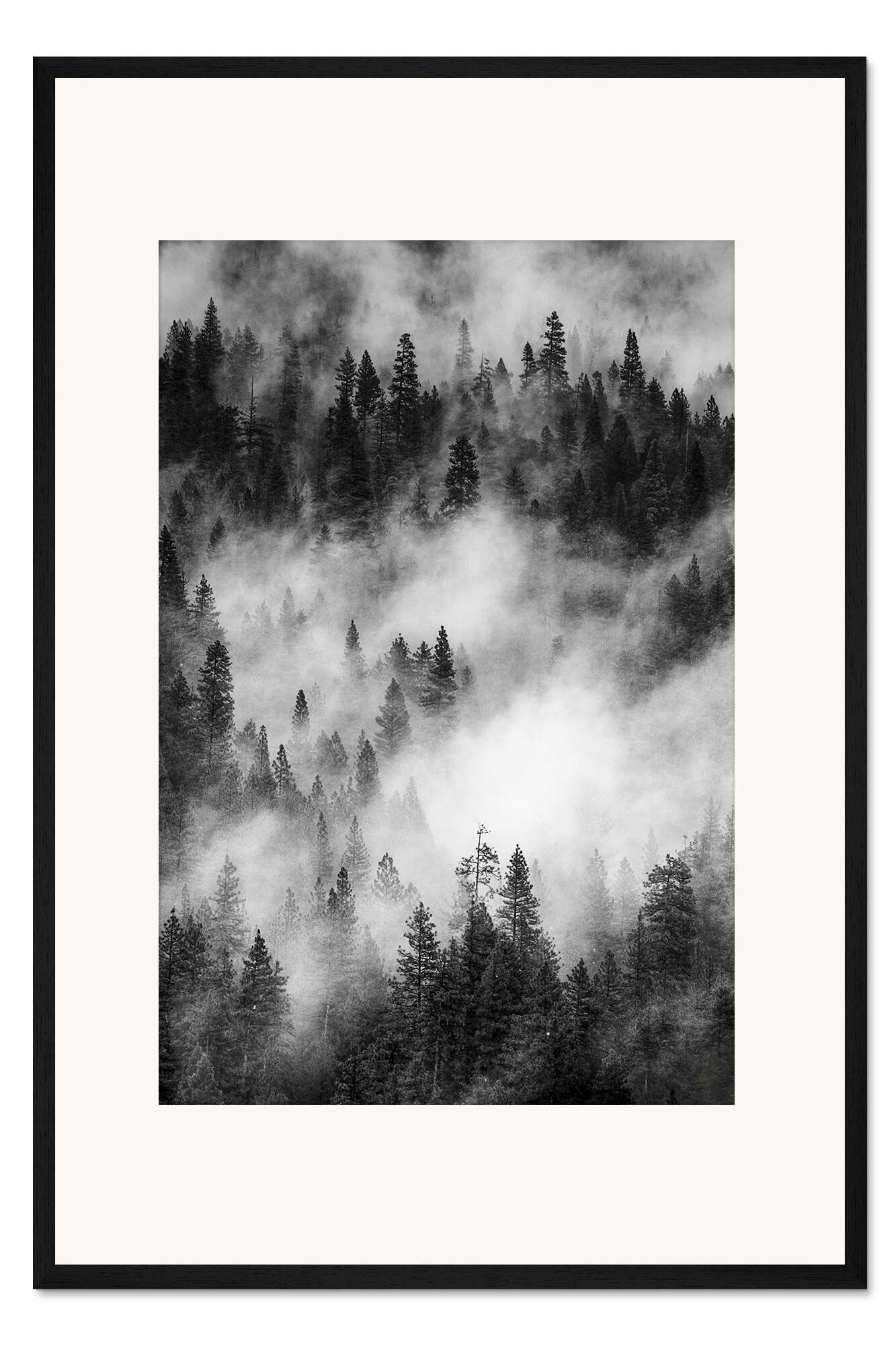 Posterlounge   Wandbilder   Schwarz-Weiß   Judith Zimmerman   Gerahmter Kunstdruck Nebel über dem Kiefernwald