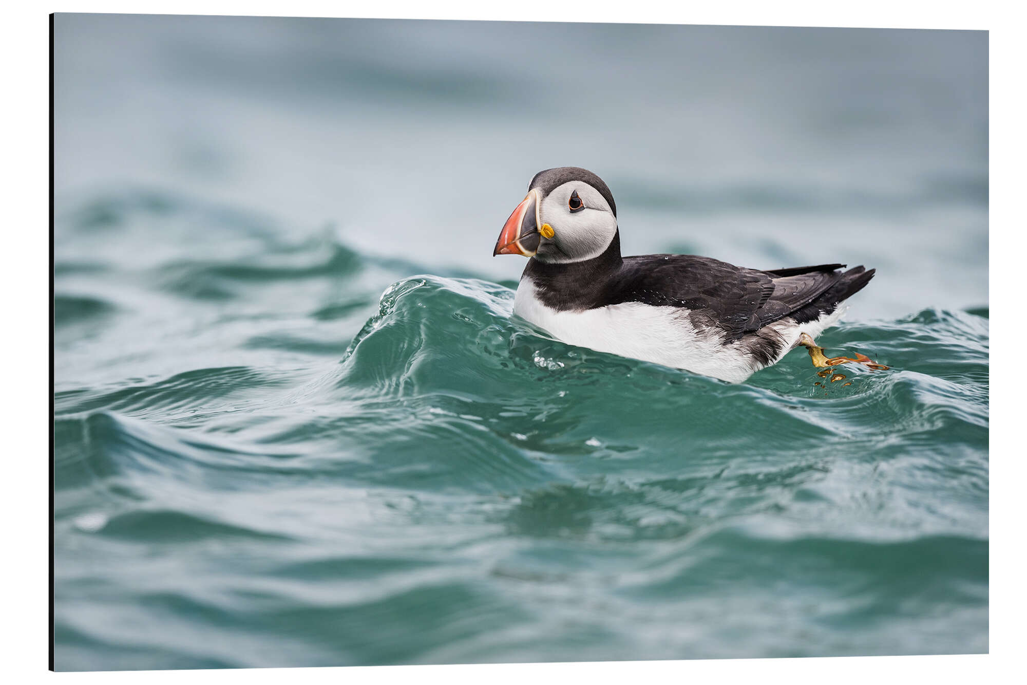 Posterlounge   Wandbilder   Fotografie   Matthew Cattell   Magnettafel Papageientaucher reitet eine Welle