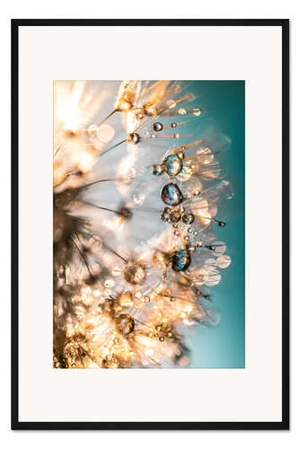 Posterlounge   Wandbilder   Natur   Wassertropfen   Julia Delgado   Gerahmter Kunstdruck Sommer-Pusteblume in Türkis/Gold