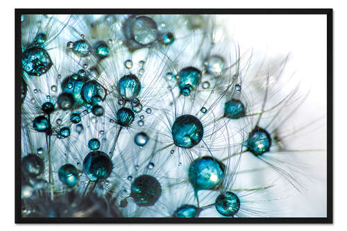 Posterlounge   Wandbilder   Türkis   Julia Delgado   Gerahmter Kunstdruck Pusteblume Tropfenglanz in Blautürkis