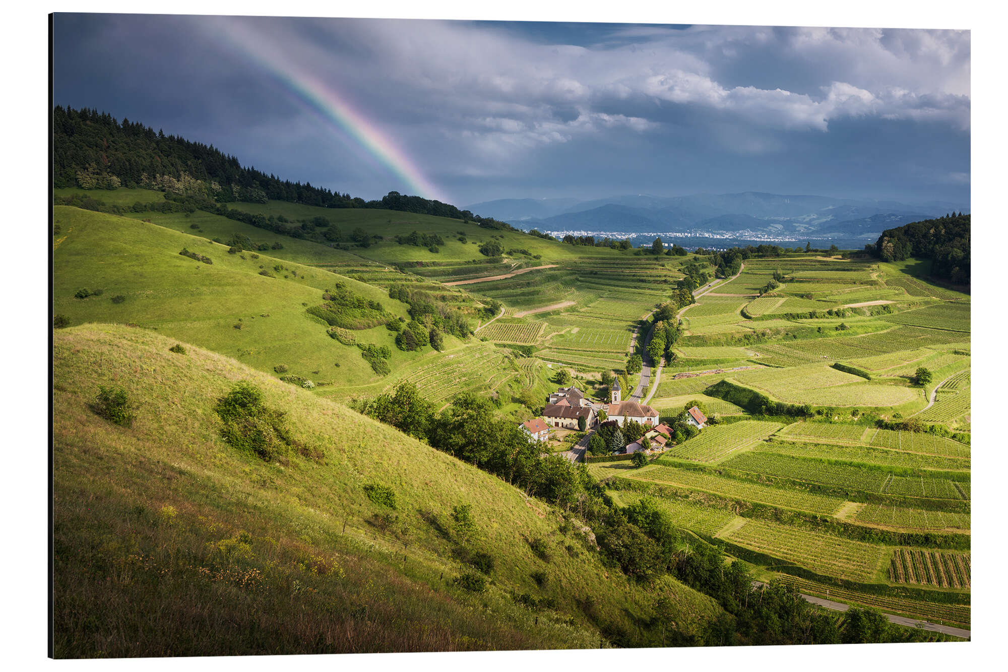 Posterlounge   Wandbilder   Querformat   Dennis Fischer   Magnettafel Kaiserstuhl im Sommer mit Regenbogen