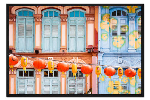 Posterlounge   Wandbilder   Querformat   Matteo Colombo   Gerahmter Kunstdruck Bunte Fenster in Chinatown, Singapur
