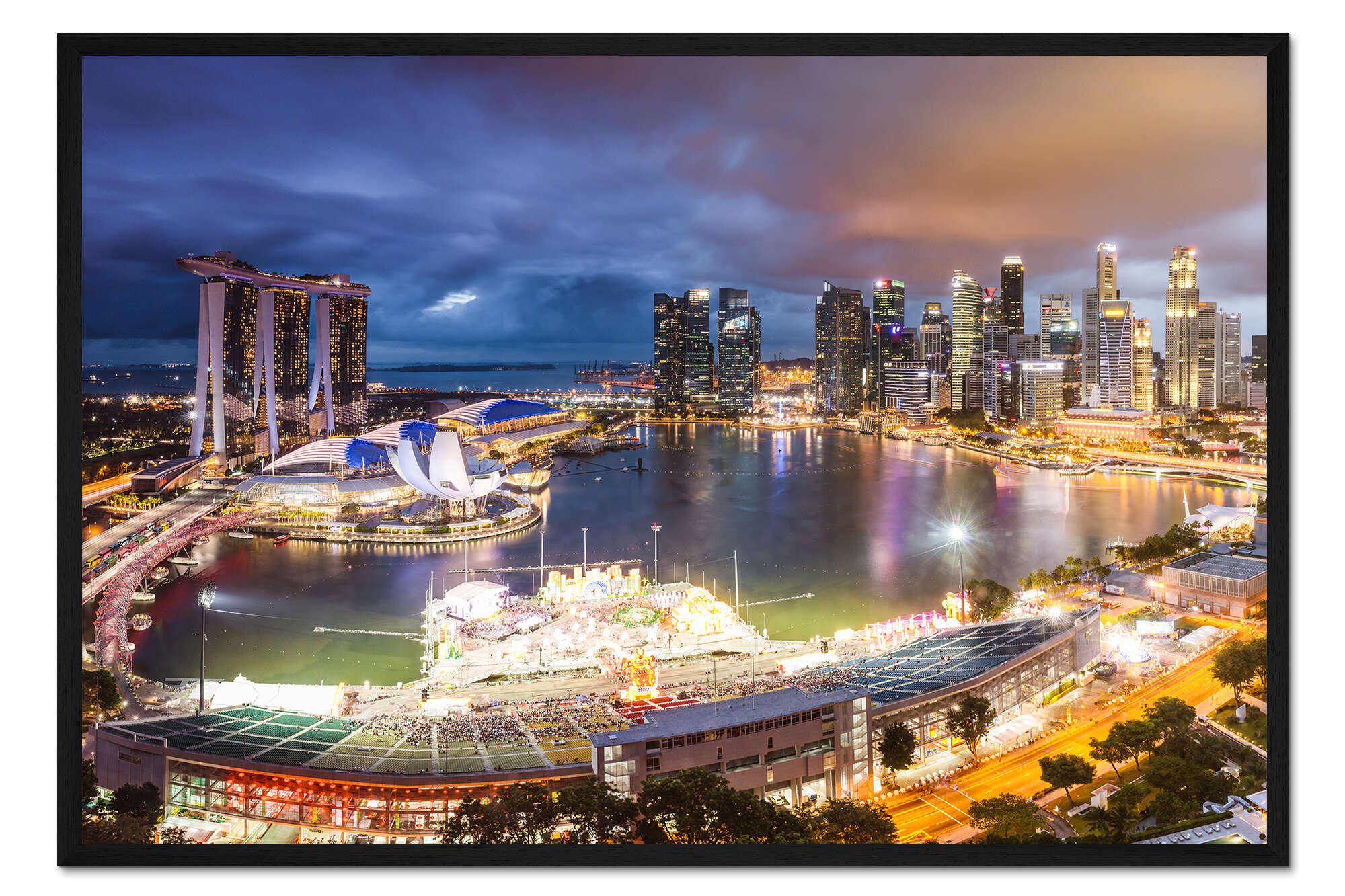 Posterlounge   Wandbilder   Querformat   Matteo Colombo   Gerahmter Kunstdruck Singapur-Skyline und Marina Bay Sands II