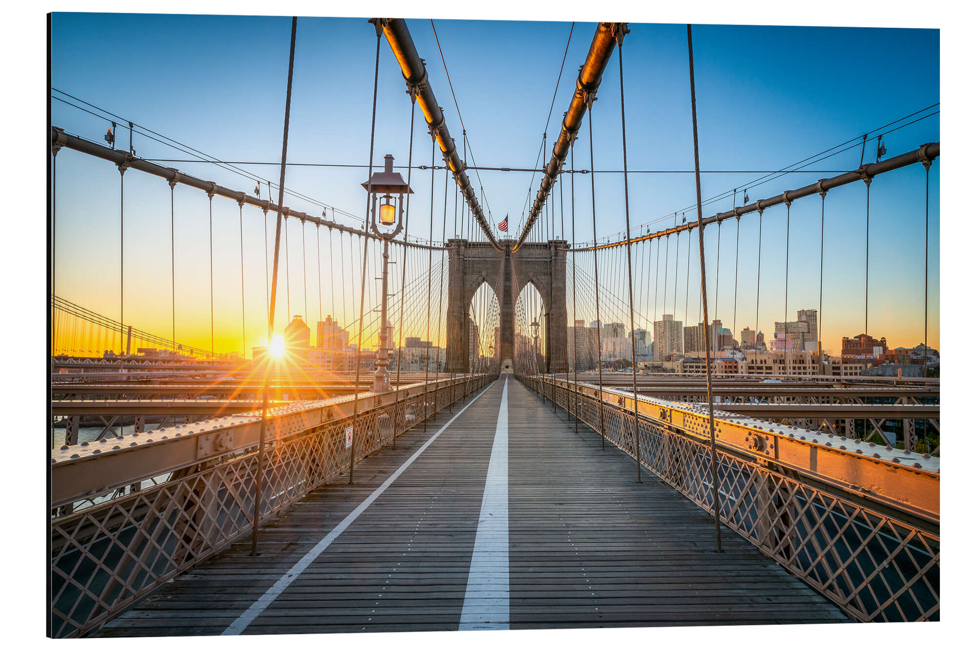 Posterlounge   Wandbilder   Fotografie   Jan Christopher Becke   Magnettafel Brooklyn Bridge bei Sonnenaufgang vor der Skyline von Brooklyn