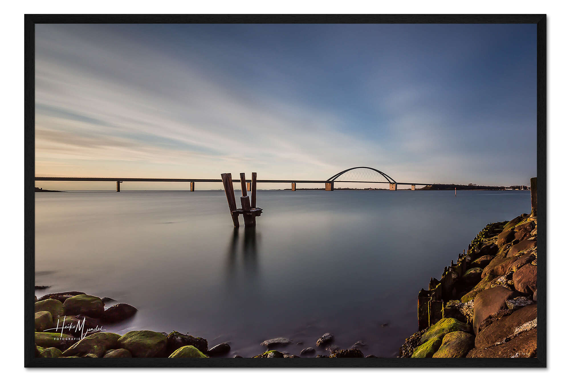 Posterlounge   Wandbilder   Fotografie   Heiko Mundel   Gerahmter Kunstdruck Fehmarnsund-Brücke im Abendlicht (Langzeitbelichtung)