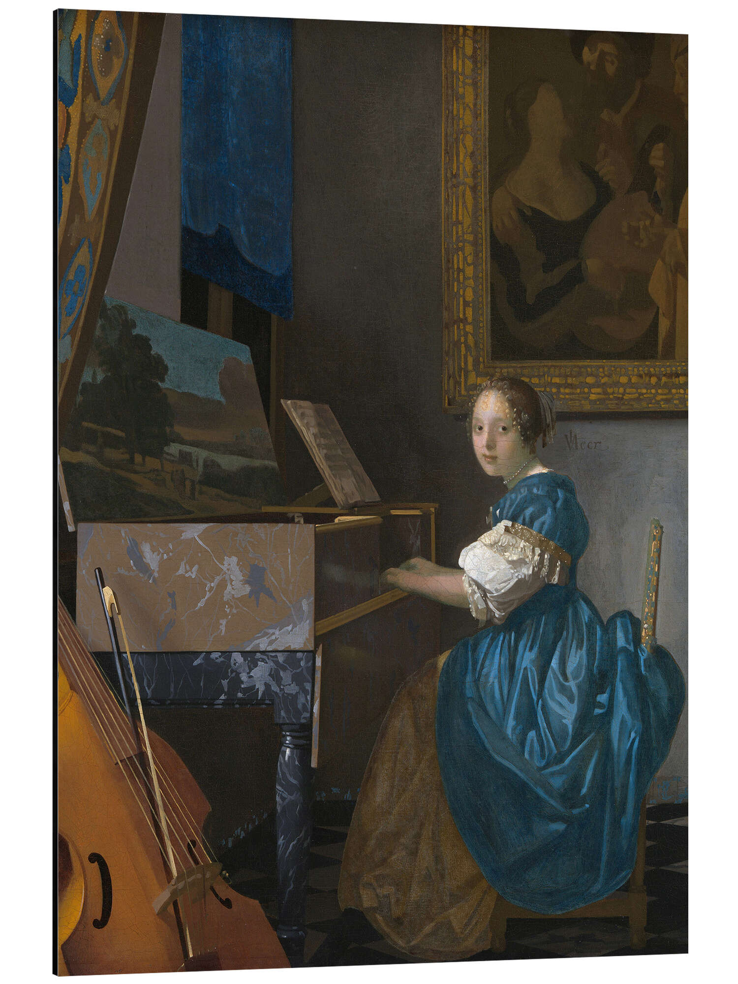 Posterlounge   Künstler   Jan Vermeer   Magnettafel Junge Frau sitzt an einem Cembalo
