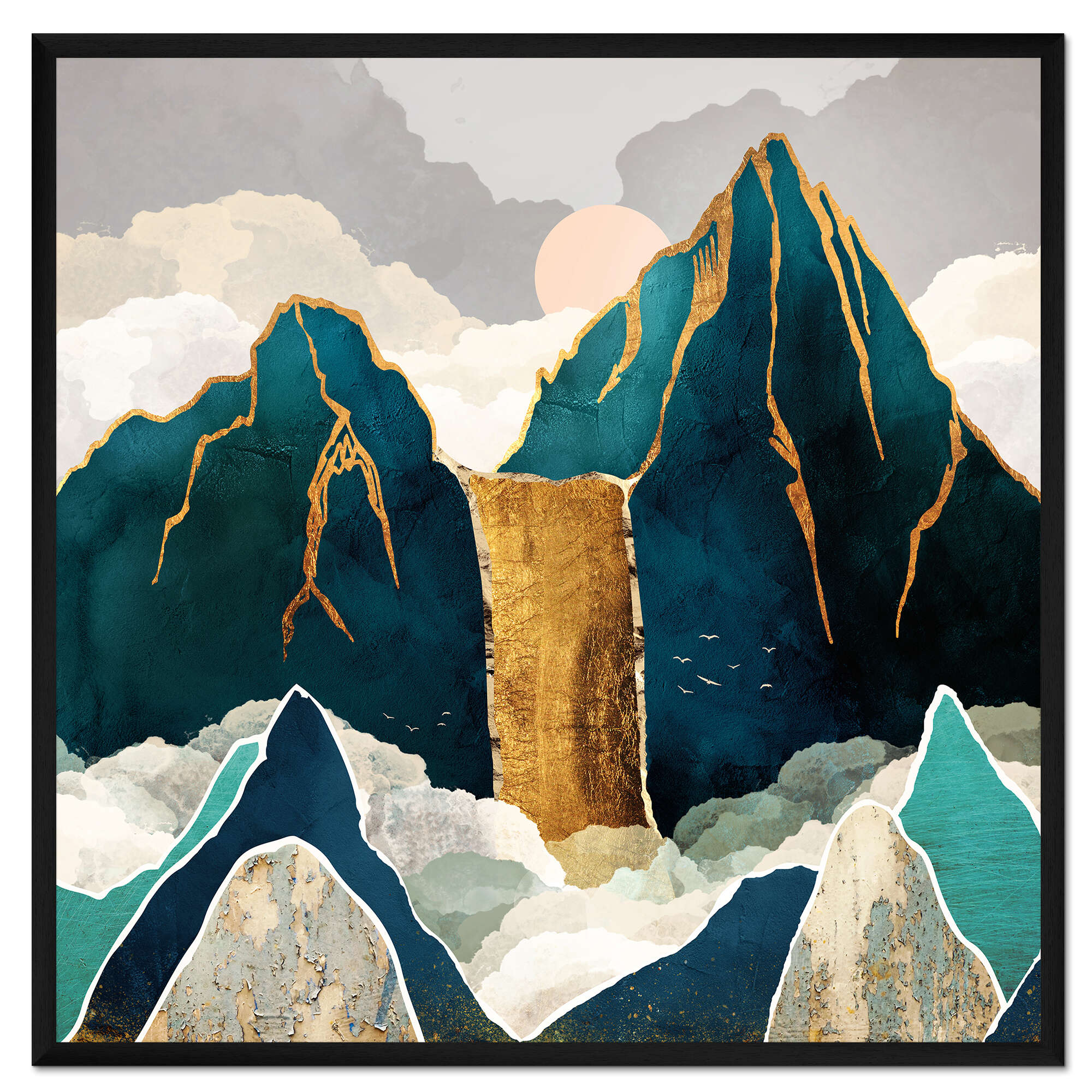 Posterlounge   Wandbilder   Quadrat   SpaceFrog Designs   Gerahmter Kunstdruck Goldener Wasserfall
