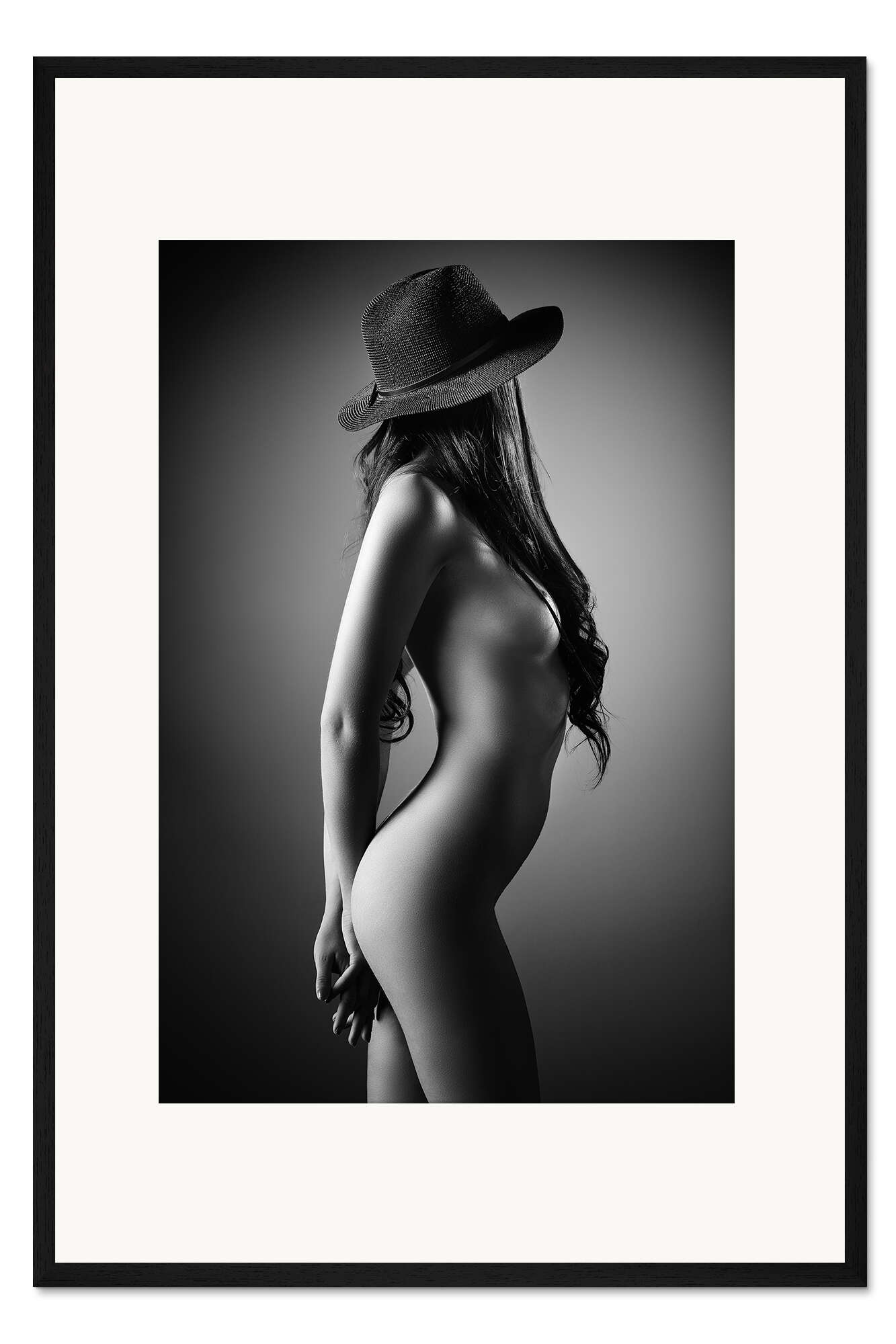 Posterlounge   Wandbilder   Schwarz-Weiß   Johan Swanepoel   Gerahmter Kunstdruck Nackte Frau mit Hut