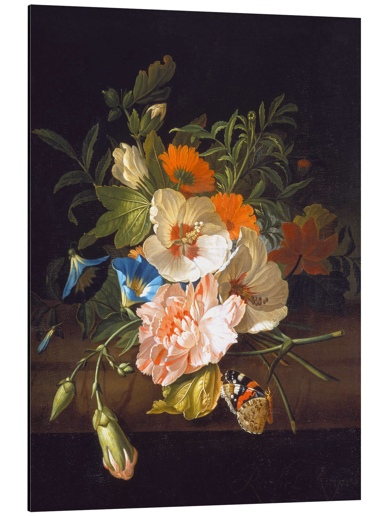 Posterlounge   Künstler   Rachel Ruysch   Magnettafel Blumenstillleben mit Schmetterlingen auf einer Steinbank