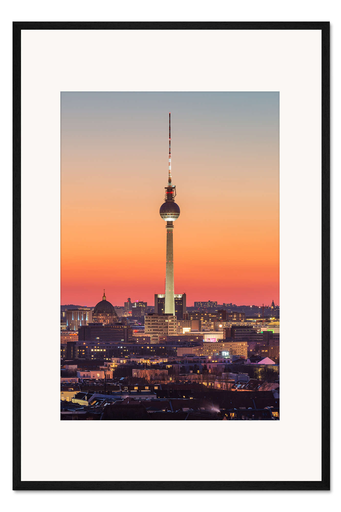 Posterlounge   Wandbilder   Orange   Robin Oelschlegel   Gerahmter Kunstdruck Berliner Fernsehturm nach Sonnenuntergang