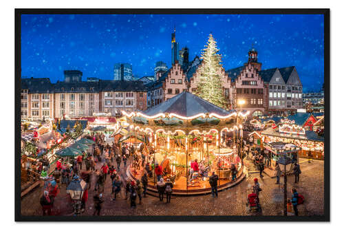Posterlounge   Wandbilder   Querformat   Jan Christopher Becke   Gerahmter Kunstdruck Weihnachtsmarkt auf dem Römerberg, Frankfurt am Main, Hessen, Deutschland
