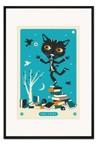 Posterlounge   Wandbilder   Petrol   Jazzberry Blue   Gerahmter Kunstdruck THE FOOL TAROT CARD CAT
