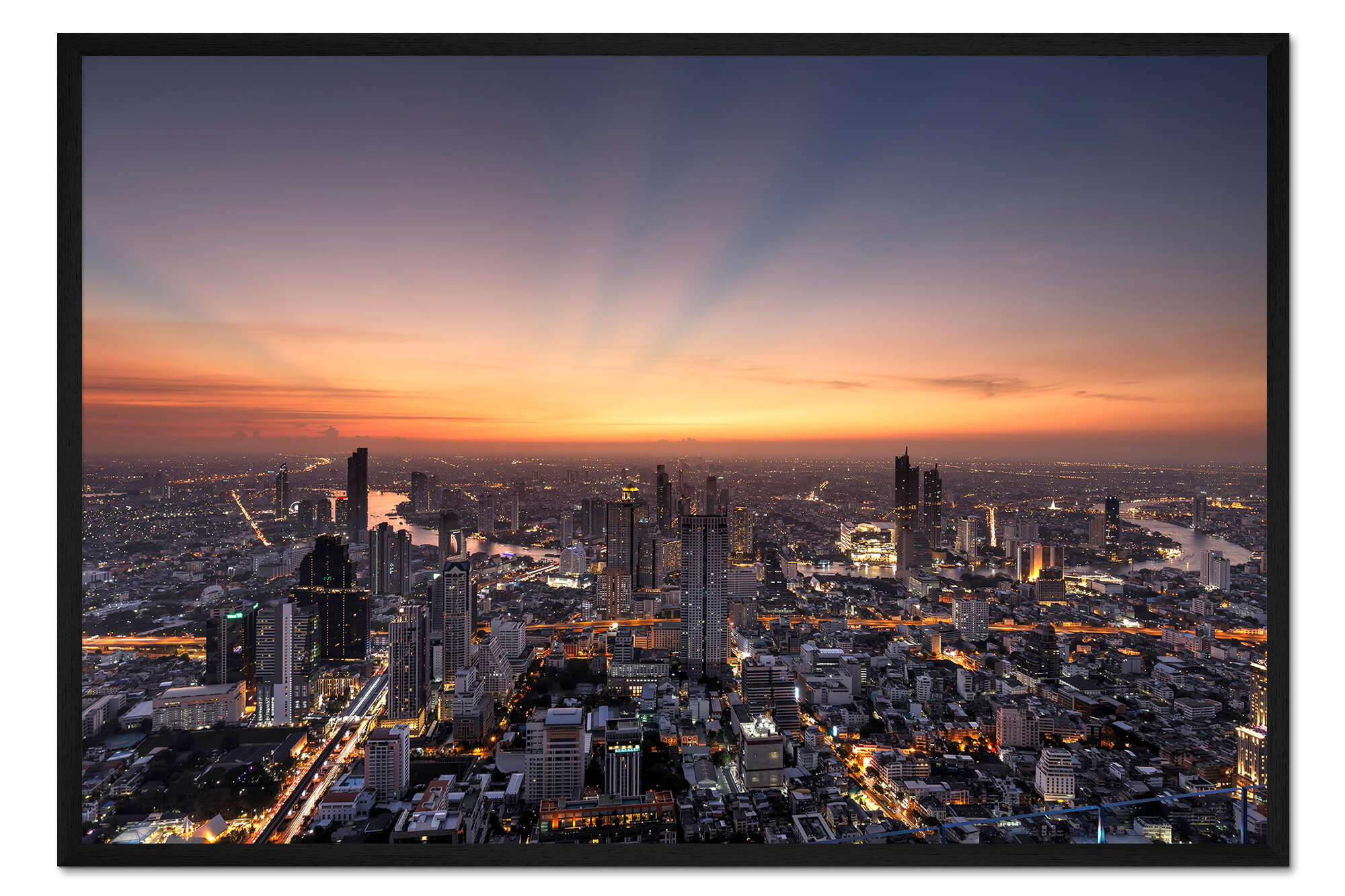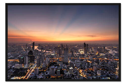 Posterlounge   Wandbilder   Reisen   Thailand   Filtergrafia   Gerahmter Kunstdruck Bangkok Skyline im Sonnenuntergang
