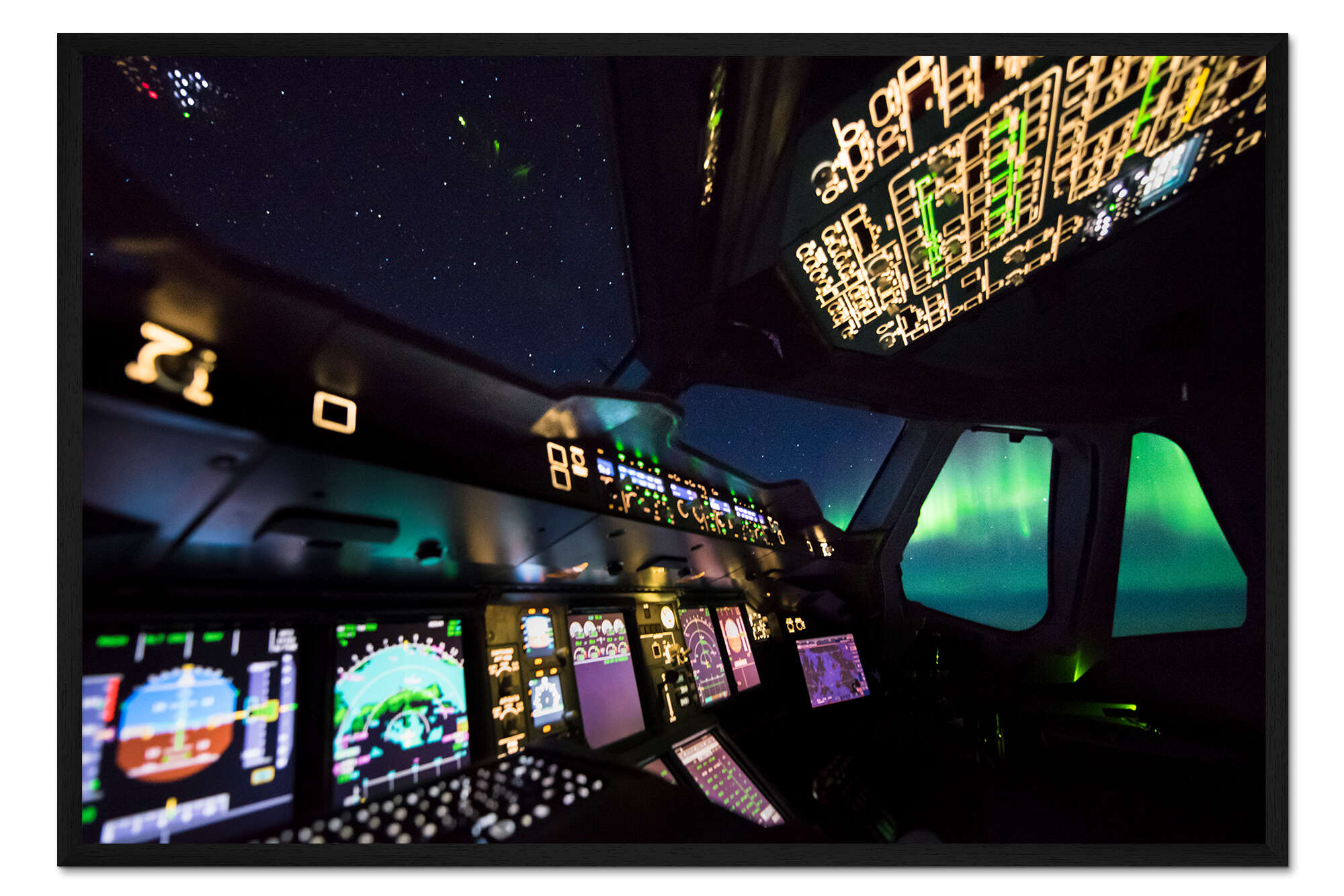 Posterlounge   Wandbilder   Fahrzeuge   Flugzeuge   Ulrich Beinert   Gerahmter Kunstdruck Airbus A380 Cockpit mit Polarlicht