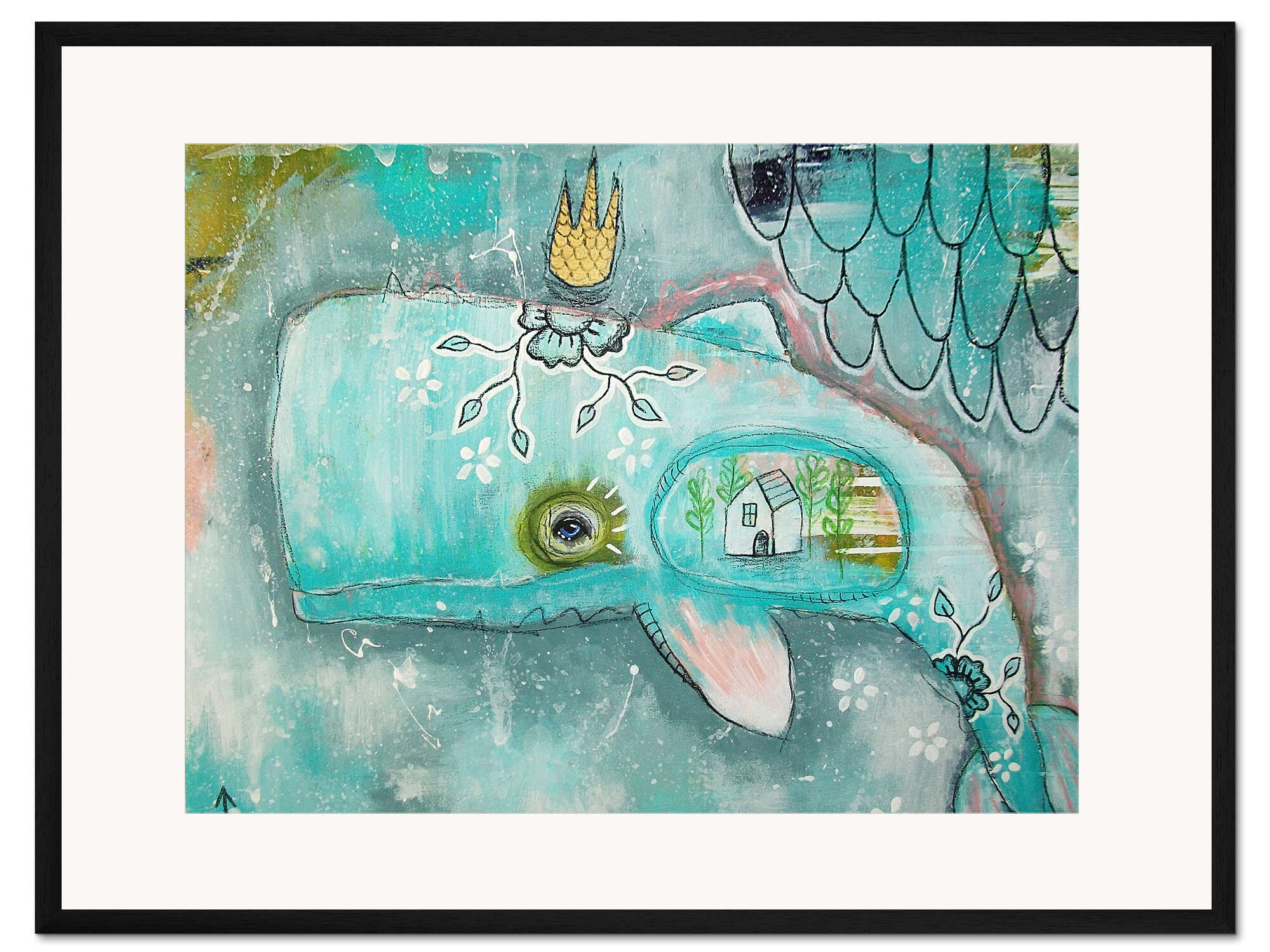 Posterlounge   Wandbilder   Kinderzimmer   Micki Wilde   Gerahmter Kunstdruck Kleiner Wal im Ozean der Träume