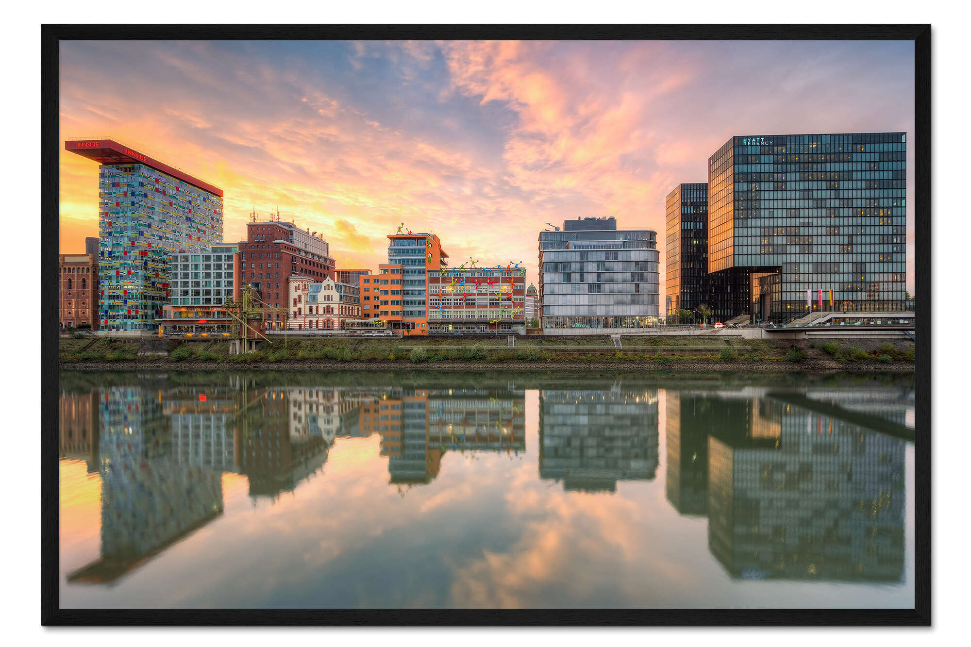 Posterlounge   Wandbilder   Querformat   Michael Valjak   Gerahmter Kunstdruck Düsseldorf Spiegelung im Medienhafen