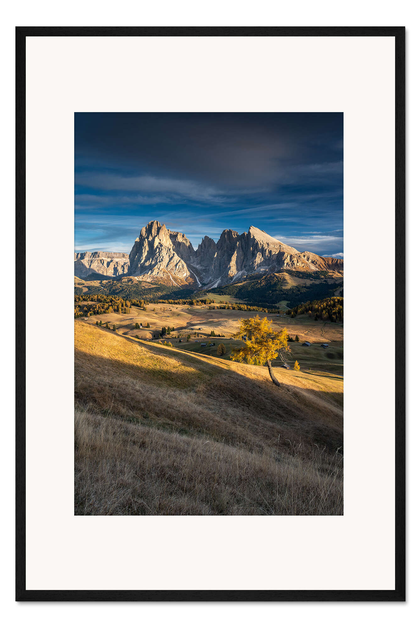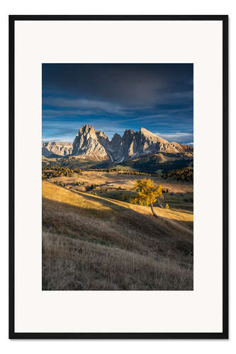 Posterlounge   Wandbilder   Landschaften   Berge & Gebirge   Dennis Fischer   Gerahmter Kunstdruck Sonnenuntergang auf der Seiser Almin den Dolomiten