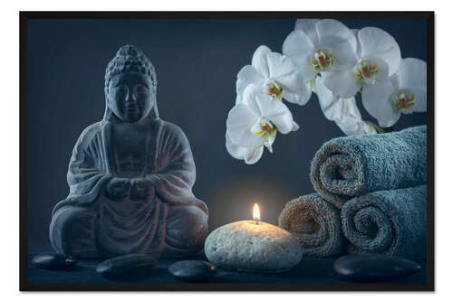 Posterlounge   Wandbilder   Spiritualität & Entspannung   Wellness   Elena Schweitzer   Gerahmter Kunstdruck Buddha-Statue auf grauem Hintergrund