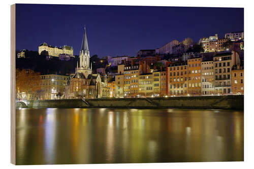 Holzbild Lyon bei Nacht