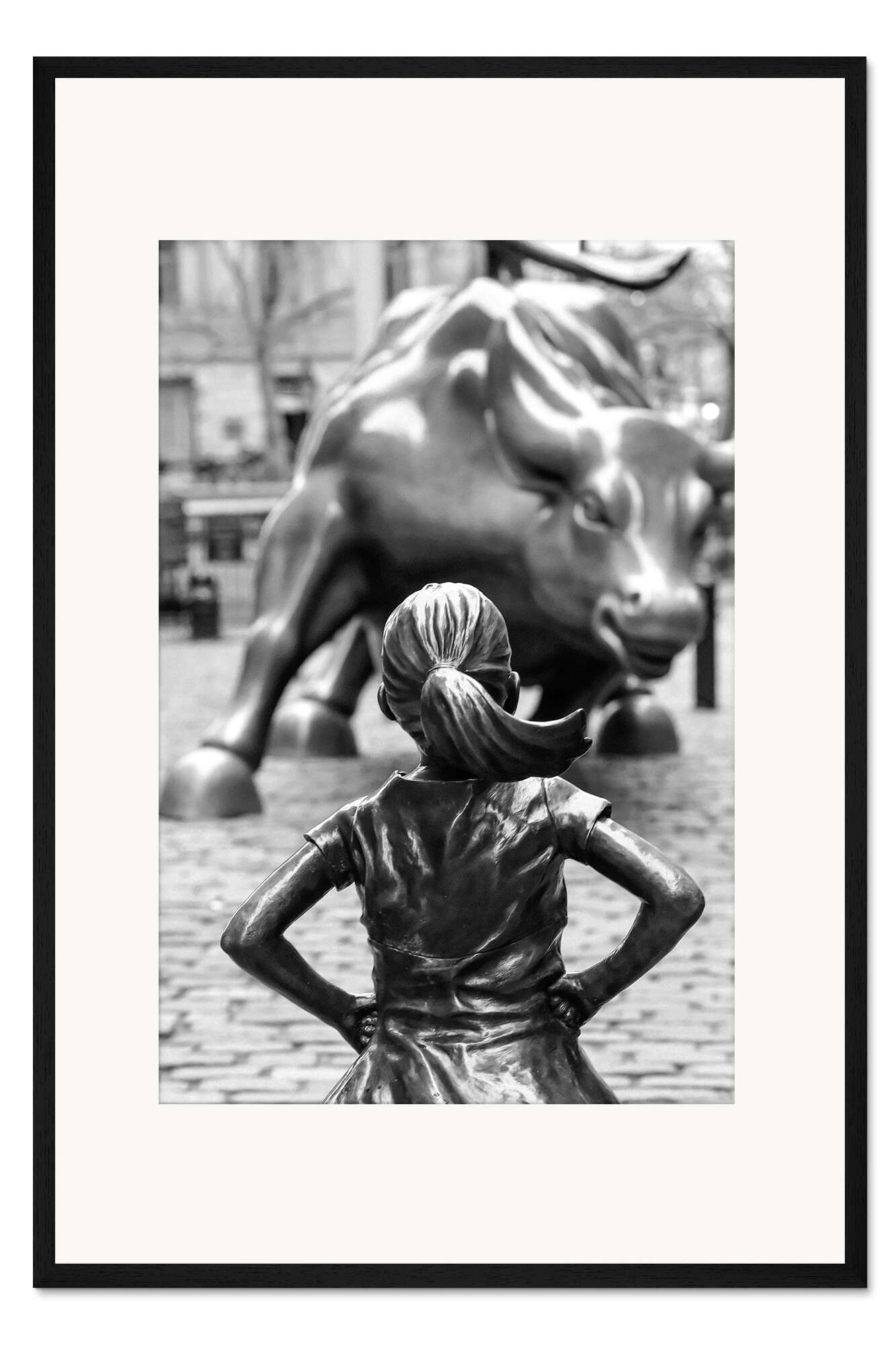 Posterlounge   Wandbilder   Tiere   Haustiere   Kühe   Art Couture   Gerahmter Kunstdruck Furchtloses Mädchen und Wall Street Bulle