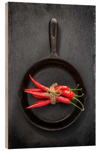 Posterlounge   Wandbilder   Küche   Uwe Merkel   Holzbild Chilischoten in der Pfanne