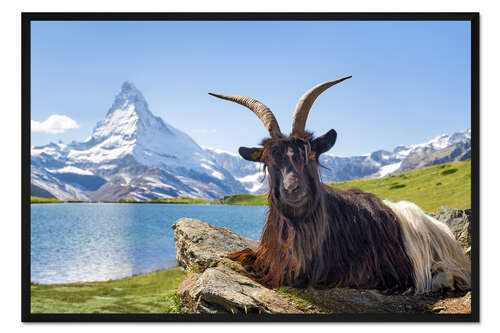 Posterlounge   Wandbilder   Tiere   Haustiere   Schafe   Jan Christopher Becke   Gerahmter Kunstdruck Matterhorn mit Walliser Schwarzhalsziege