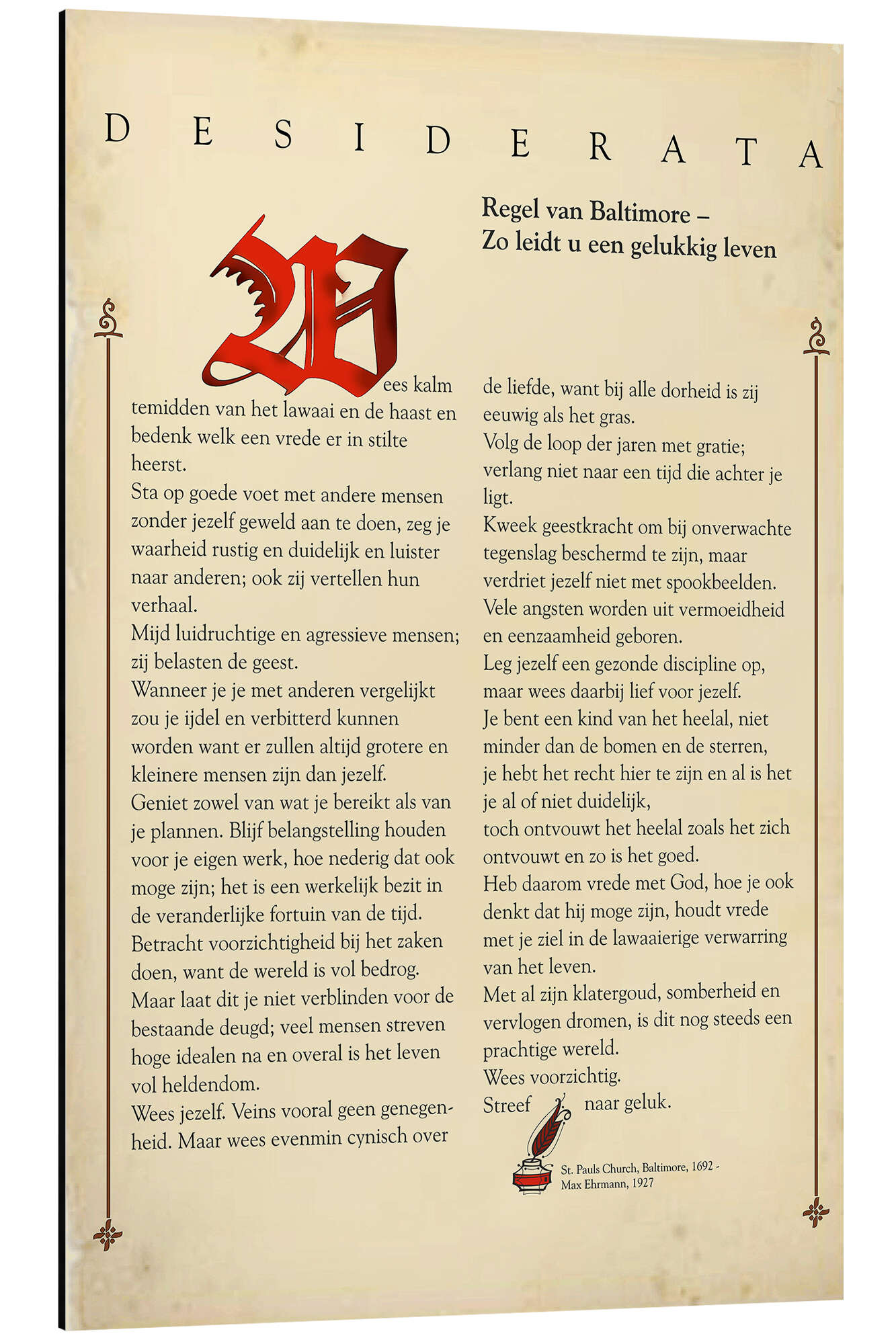 Magnettafel Desiderata (Niederländisch) I