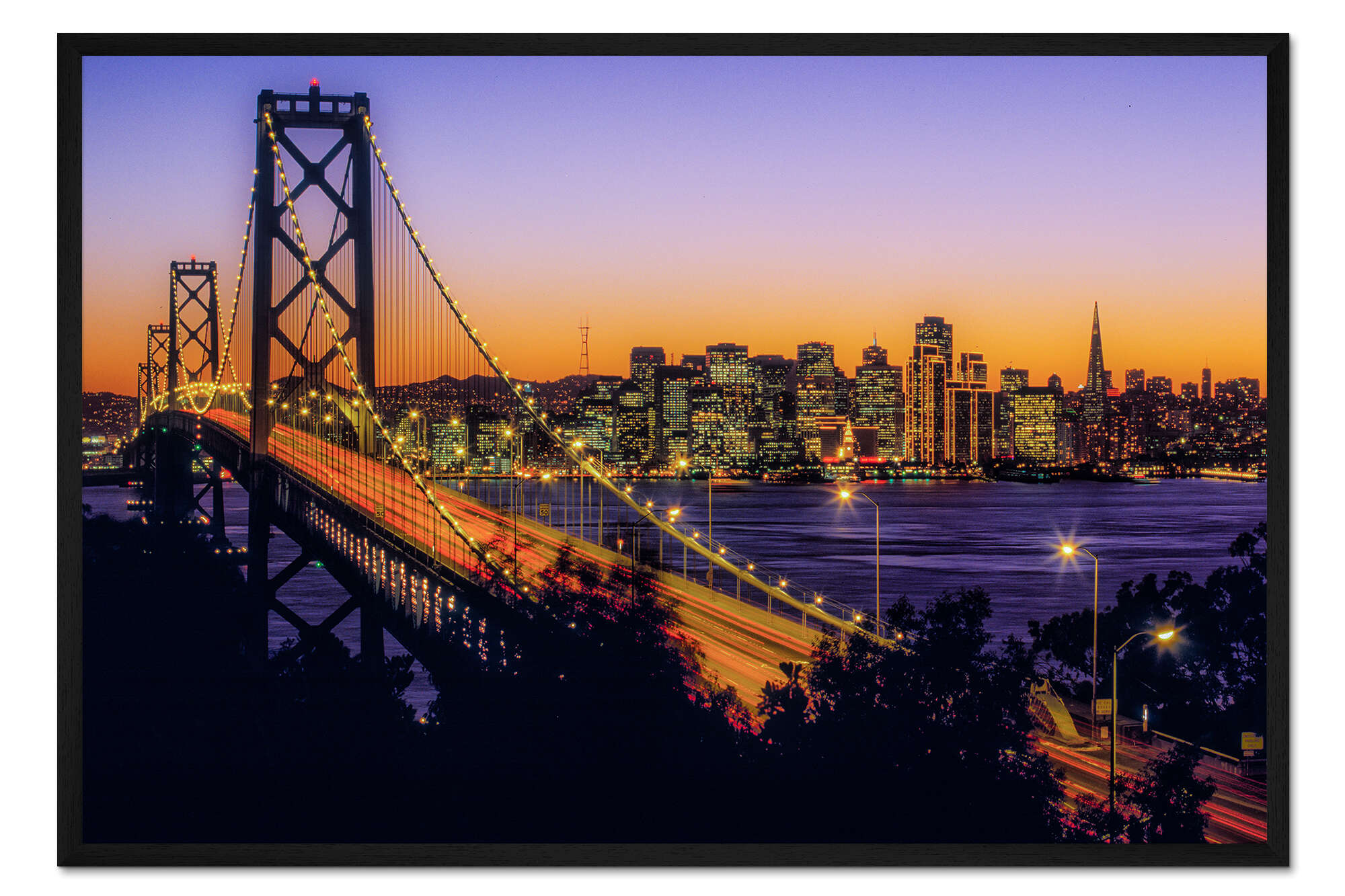 Posterlounge   Wandbilder   Fotografie   Gerahmter Kunstdruck Oakland Bay Bridge bei Sonnenuntergang, Kalifornien
