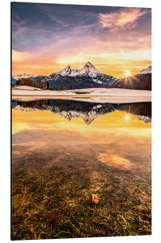 Magnettafel Watzmann Spiegelung im Sonnenuntergang