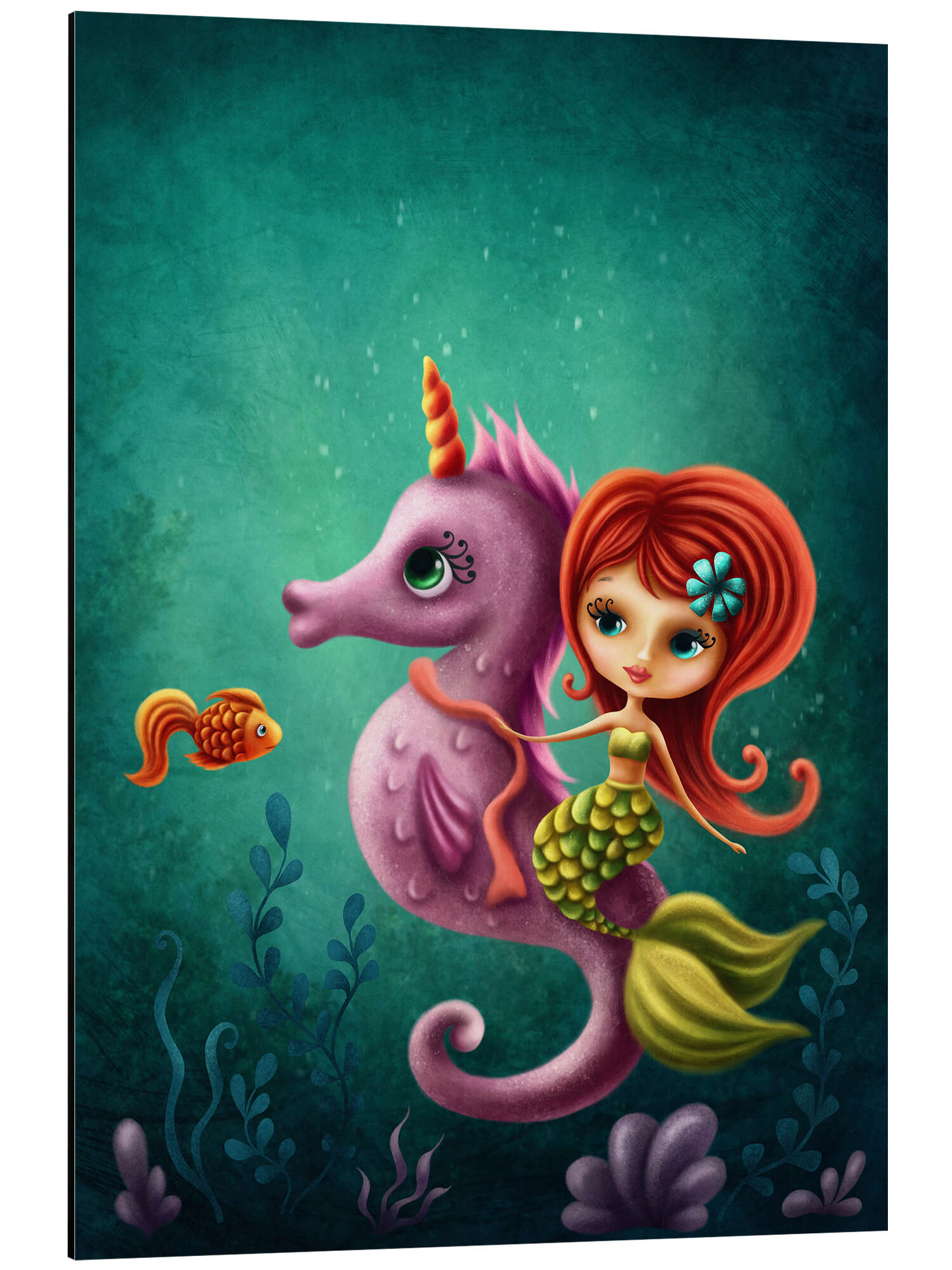 Posterlounge   Wandbilder   Illustration   Zeichnung & Skizze   Elena Schweitzer   Magnettafel Meerjungfrau mit einem Seepferdchen