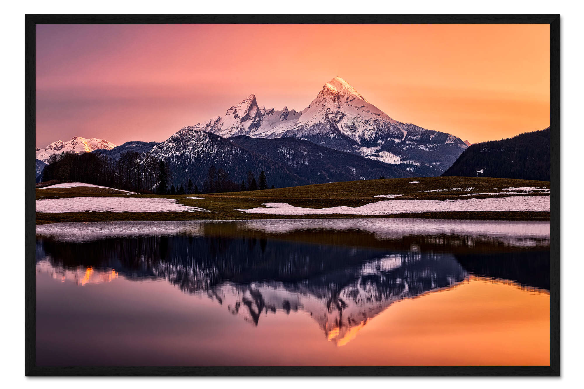 Posterlounge   Wandbilder   Fotografie   Dieter Meyrl   Gerahmter Kunstdruck Watzmann bei Sonnenuntergang