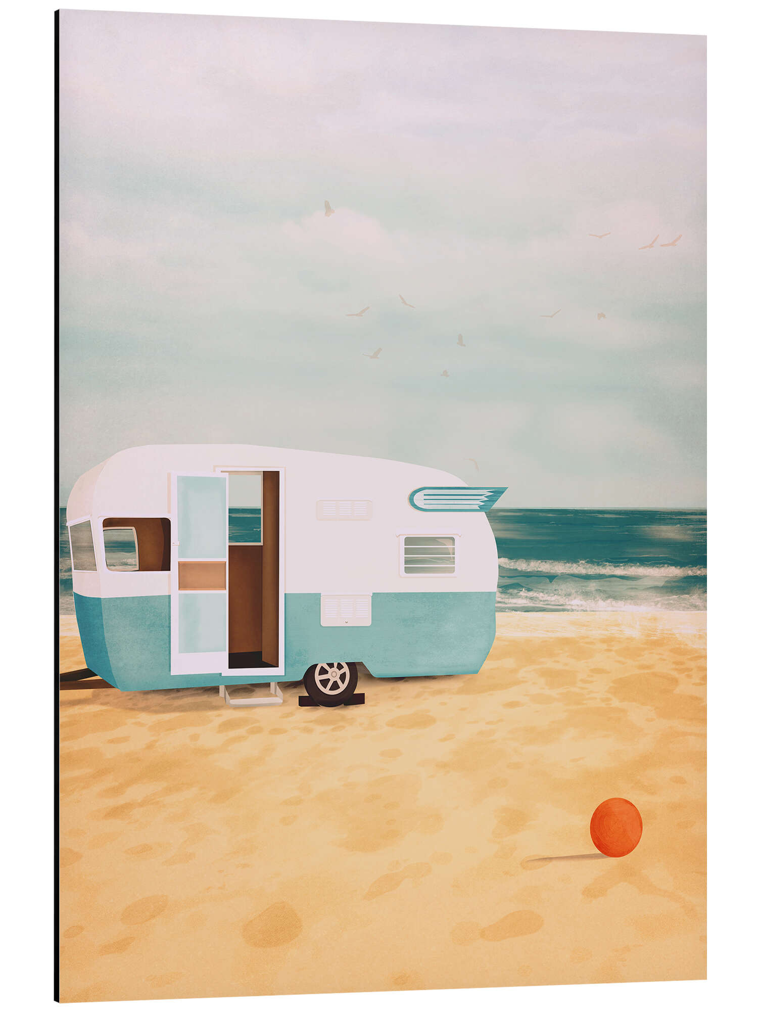 Posterlounge   Wandbilder   Malerei   Aquarell Malerei   Sybille Sterk   Magnettafel Wohnwagen am Meer