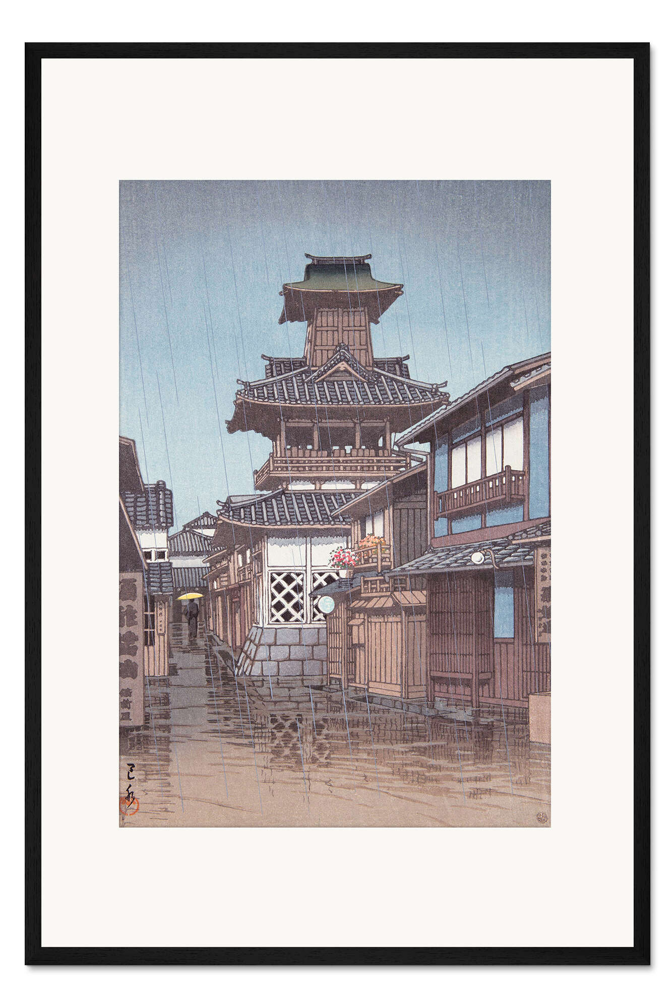 Posterlounge   Wandbilder   Malerei   Asiatische Kunst   Kawase Hasui   Gerahmter Kunstdruck Glockenturm in Okayama