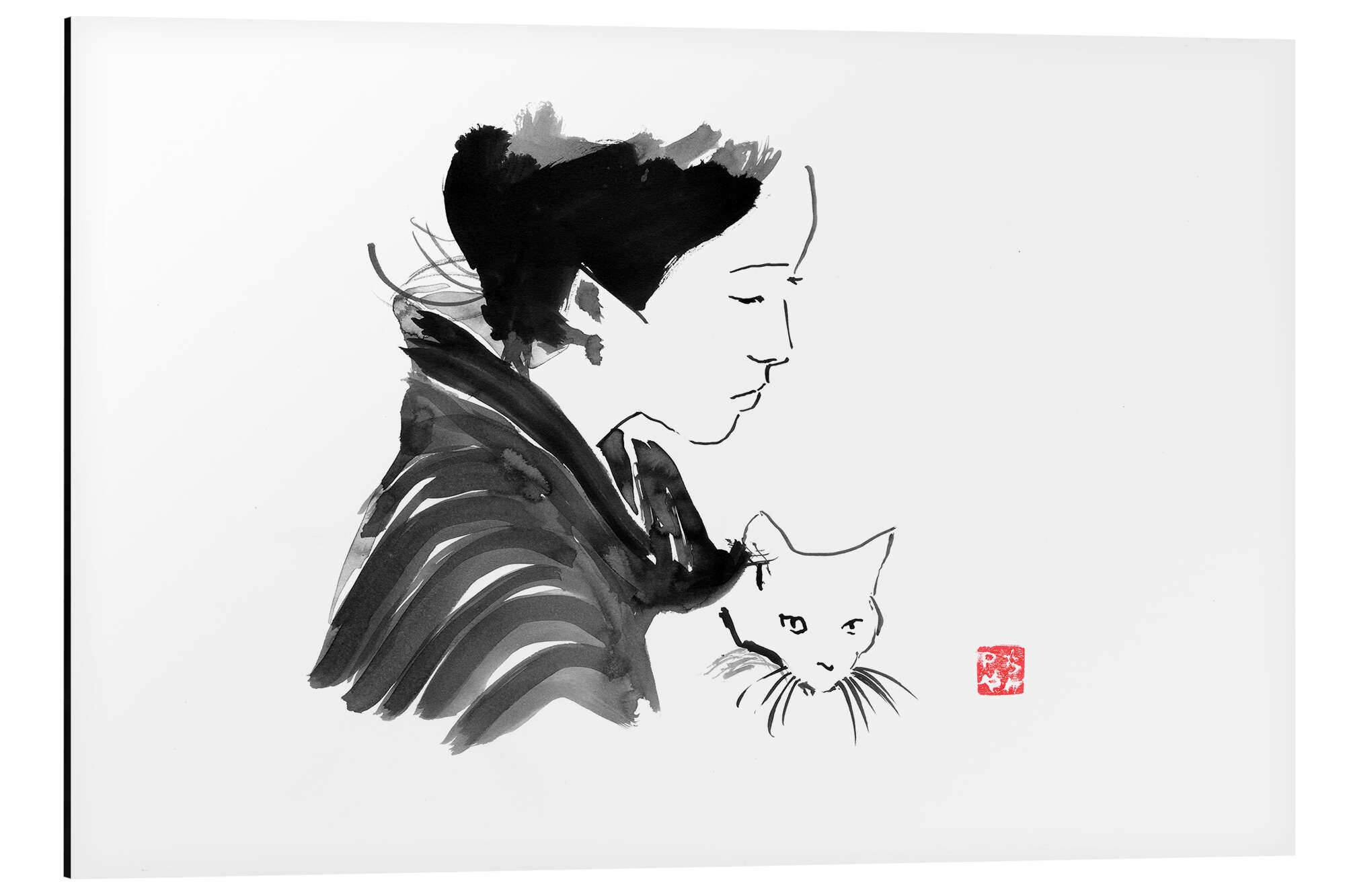 Posterlounge   Wandbilder   Schwarz-Weiß   Péchane   Magnettafel Geisha mit Katze
