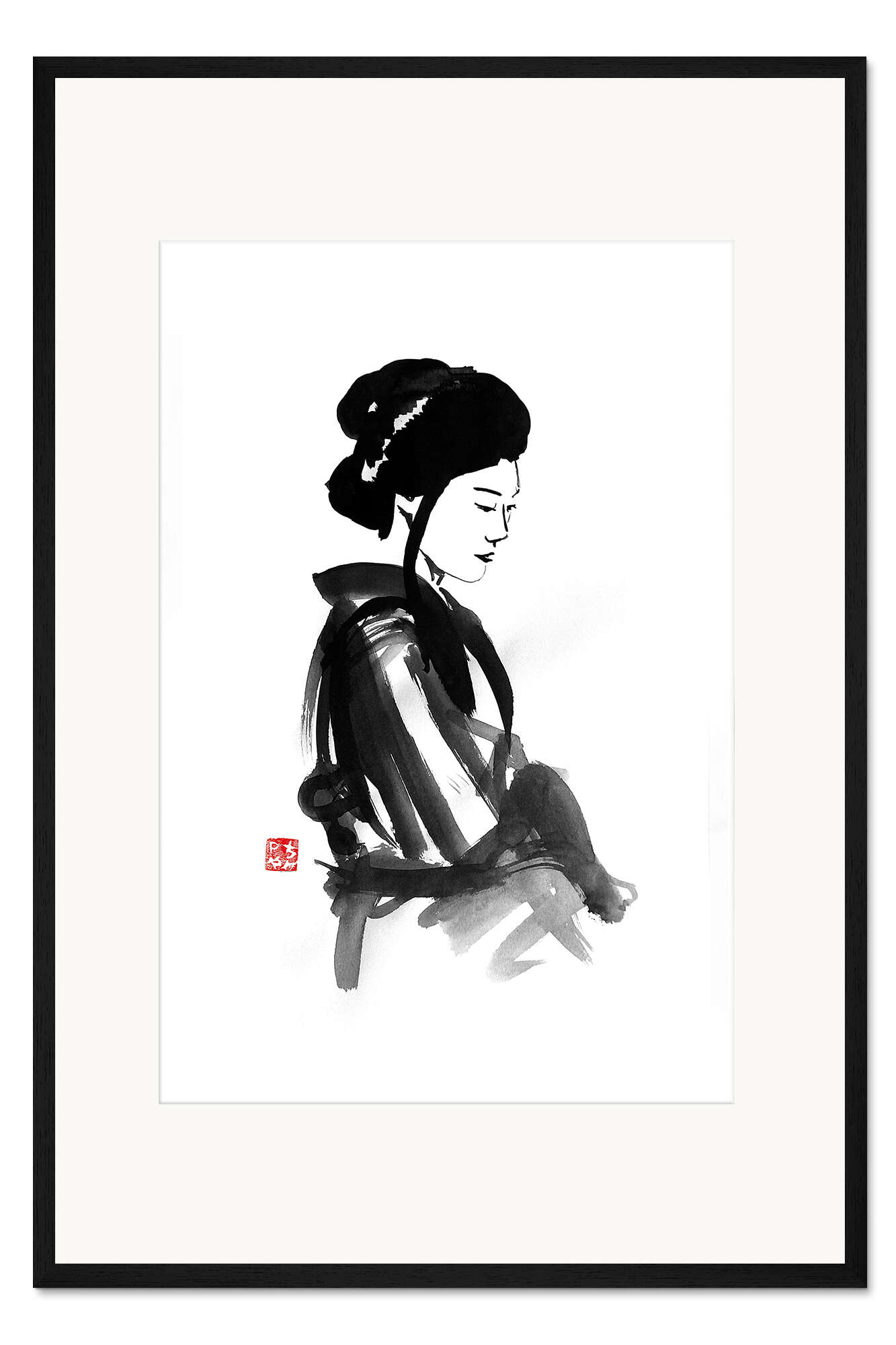 Posterlounge   Wandbilder   Schwarz-Weiß   Péchane   Gerahmter Kunstdruck Nachdenkliche Geisha 02