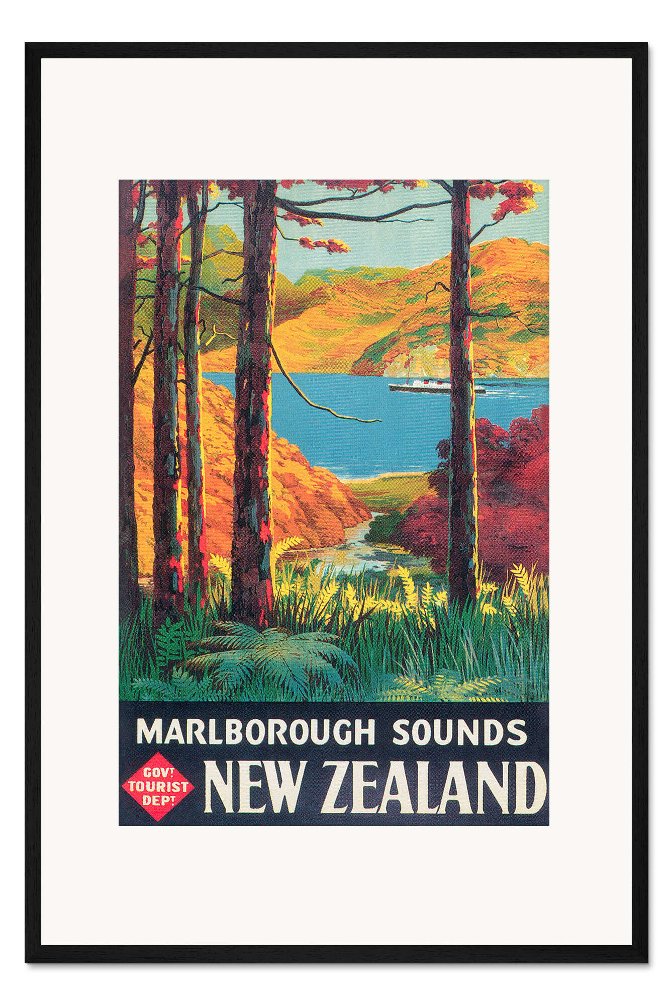 Posterlounge   Wandbilder   Illustration   Vintage Travel Collection   Gerahmter Kunstdruck Neuseeland (englisch)