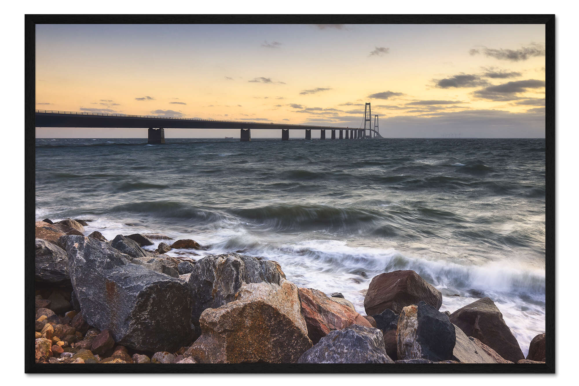 Posterlounge   Wandbilder   Landschaften   Strände & Küsten   Rafal Kaniszewski   Gerahmter Kunstdruck Küste bei Storebælt Østbroen, Dänemark